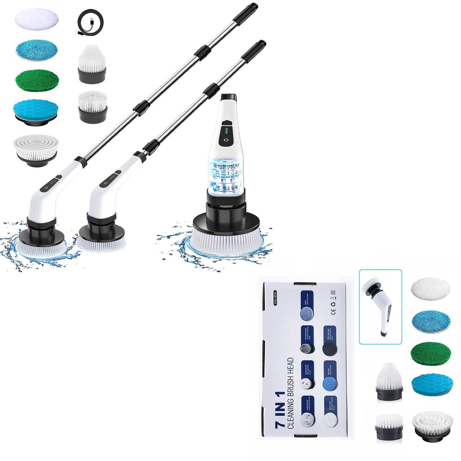 - 9+7 Cleaning Brush Heads- Includes a variety of brush heads and mop pads for different cleaning scenarioThe mop is great for car and floor; Flat brush suitable for oven , stove and tile cleaning; Cone brush is perfect for cleaning window sill and tight places; Sponge is good for window cleaning. You can always find the optimum brush heads to clean target places.