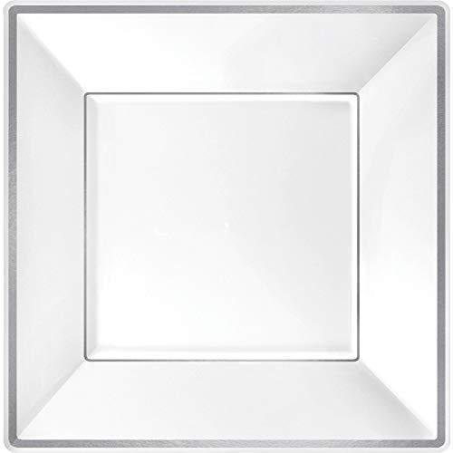 Elegant Square Plastic Plates with Silver Trim - 10\" (Pack of 8) - Premium White Dinnerware - Perfect for Buffets, Parties, and Special Occasions