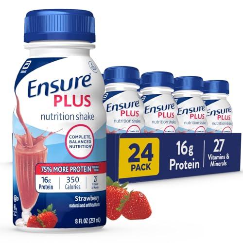 Gain the nutritional support you need with Ensure Plus Strawberry Nutrition Shakes. Each flavorful, ready-to-drink shake has 16 grams of protein and 27 essential vitamins and minerals, and is clinically proven to help people gain weight. Ensure Plus also provides vitamins and minerals, including vitamins A, C, D, E, and zinc, to help support your immune system. Ensure Plus Strawberry is suitable for lactose intolerance*, kosher, and halal dietary guidelines, making it a convenient and nutritious choice for a variety of needs. *Not for people with galactosemia.