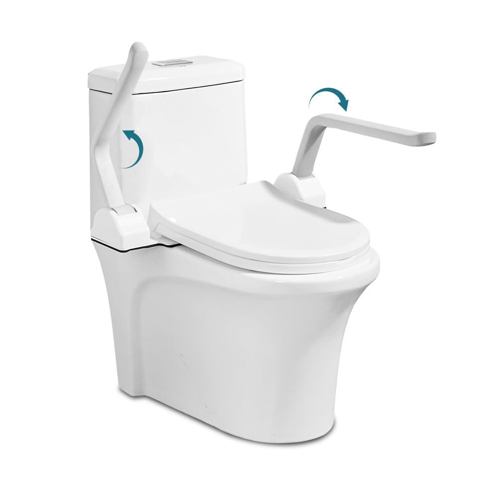 - More Comfortable LeaningDesigned to promote a relaxed and comfortable sitting position, these toilet rails eliminate arm-dangling and the need to bend over when getting up. The lightweight and durable aluminum frame is corrosion-resistant, ensuring long-lasting use.