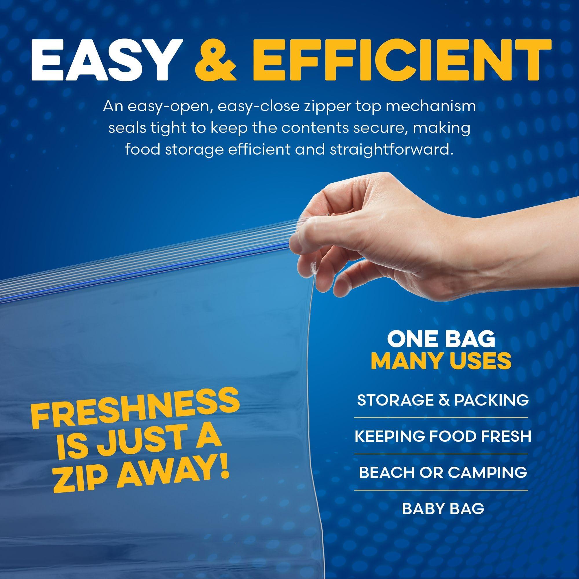 - EASY AND EFFICIENT ZIP TO LOCK- An easy-open, easy-close zipper top mechanism seals tight to keep the contents secure, making food storage efficient and straightforward letting you focus on the joys of prepping cooking and eating. The waterproof design is perfect for packing, moving, and transporting items back and forth.