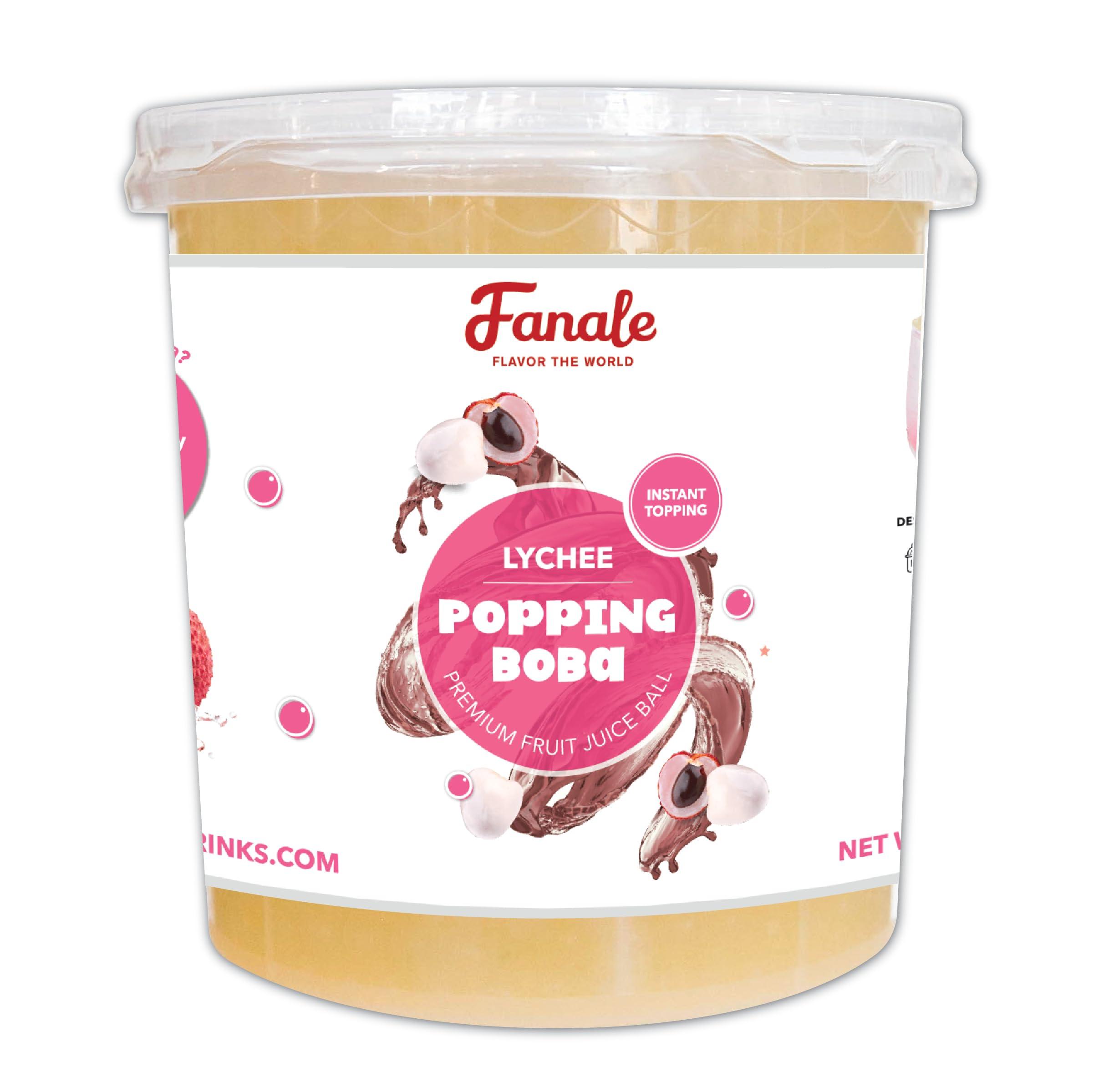 Fanale Bursting popping boba are also commonly known as juice popper or popping juice ball. These little juice balls are filled with surprising good flavors. It is coated in a clear slightly gummy skin with fruit juice and flavoring inside. Throw them on your favorite dessert or drinks and enjoy!