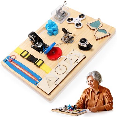 - Perfect Gift: Multifunctional Alzheimers Products, crafted for the elderly and others with special needs, this fidget busy board is a wonderful calming toys. Featuring multiple sensory games, it provides hours of cognitive stimulation and motor skill practice.