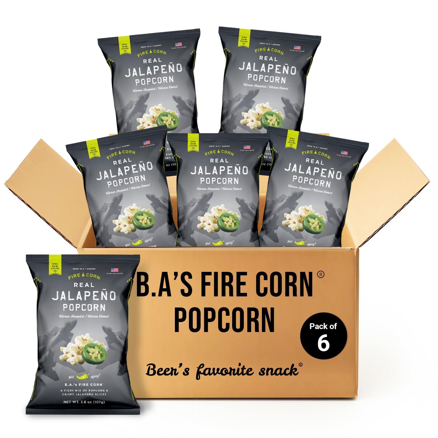 Fire Corn Popcorn Pack of 6 Real Jalapeno Popcorn Gluten Free, Spicy, Non-GMO, Healthy Snacks Founded & Owned by Combat Veteran, Original Flavor, 3.8 oz Sharing Bags