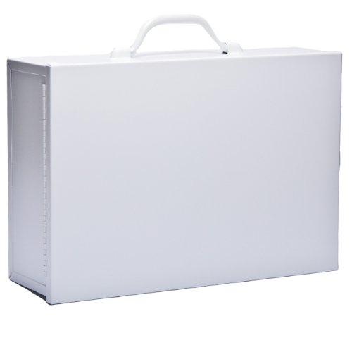 Dimensions: 14 3/4'' x 10 1/4'' x 4 5/8'', 2 shelves. Baked white enamel, metal kit. Empty. Perfect for shops, offices, schools, garages, etc.