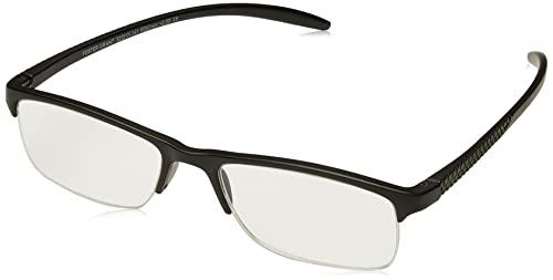 Foster Grant paolo reading glasses have an eye-catching matte Black metal brow and rubberized textured temples. The semi rimless lenses have a timeless rectangular/square shape.