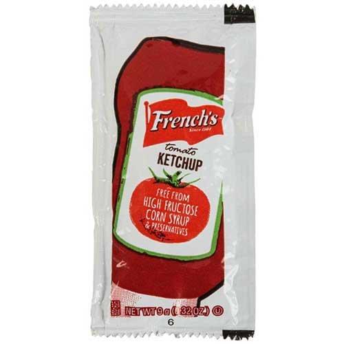 Frenchs Tomato Ketchup, 9 Gram -- 1500 per case. A rich and sweet flavor profile. Traditional Sweet and Tangy tomato flavors. Rich, thick consistency perfect for burgers and fries. Free From High Fructose Corn Syrup Country of Origin: United States, Kosher