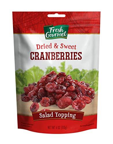 - DRIED & SWEET CRANBERRIES SALAD TOPPING: Plump cranberries, dried with a touch of sweet; 4-oz. (Pack of 9)