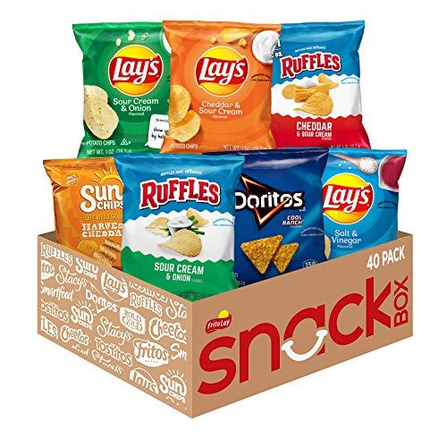 - (5) bags each of Sunchips Harvest Cheddar and Lay's Salt & Vinegar, (6) bags each of Lay's Cheddar & Sour Cream, Ruffles Cheddar & Sour Cream, Ruffles Sour Cream & Onion, Lay's Sour Cream & Onion, and Doritos Cool Ranch