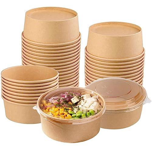 - ECO-FRIENDLY CHOICE - Crafted from eco-friendly kraft paper, these bowls are biodegradable and compostable, reducing your environmental impact. The disposable plastic lids are made from recyclable materials, making them a responsible choice for conscious consumers.