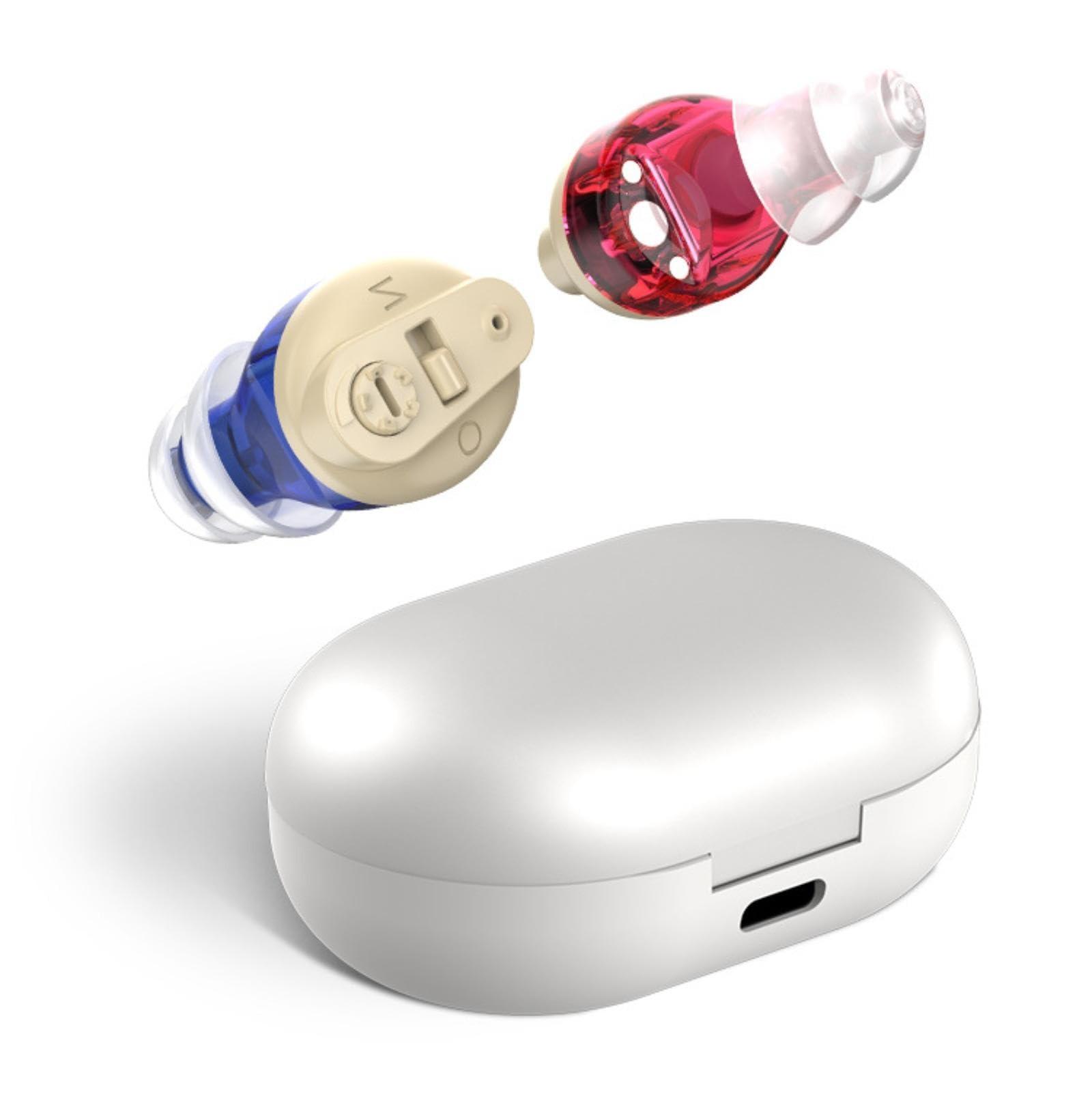 - EASY AND CONVENIENT OPERATIONWith a simple red and blue color design, our hearing aids are easy to operate for people of all backgrounds. The five adjustable volume levels allow you to customize the amplification according to your personal preferences.