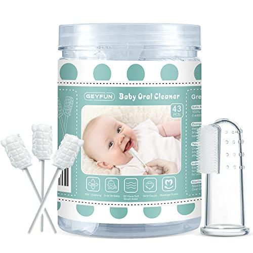 - Professinal Design: Geyfun baby tongue cleaner swab are designed with a double suture fastening structure that won't fall off, 3D wave soft brush head made of swab-style brushes can clean the mouth 360, making cleaning easier,And we use a paper rod handle that easily reaches baby's entire mouth (super soft), making it a great baby tongue cleaner! stable and safe to use.