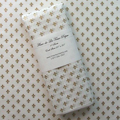 This package contains 10 sheets of white tissue paper with gold fleur de lis symbols. Each sheet is 20" x 30". Add a special "French" touch to your gifts! (Also available in a 30 count package; see our separate listing)
