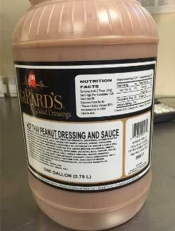 Girards Dressing Hot Thai Peanut Dressing and Sauce, 1 Gallon -- 2 per case. A spicy, creamy style sauce with peanuts, soy sauce, garlic, chili garlic sauce, and spices. Excellent complement to a noodle and chicken salad; or as a dipping sauce for sauteed chicken, beef, or shrimp.(Non-Separating)