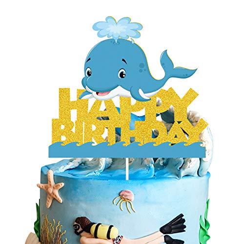 Glitter Dolphin Happy Birthday Cake TopperMarine Dolphin Cake Decor,Sea Animal Theme for Baby Shower or Birthday Party Decorations