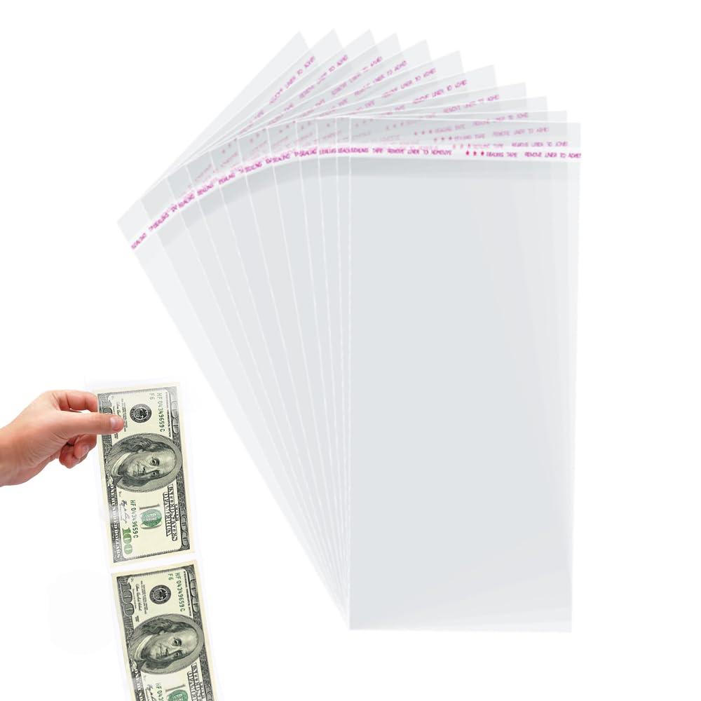 Gloreyan 100pcs Cake Money Box Transparent Bag,Resealable Cellophane Adhesive Self-Sealing Clear Plastic Packing Bag for Birthday Wedding Party Decoration