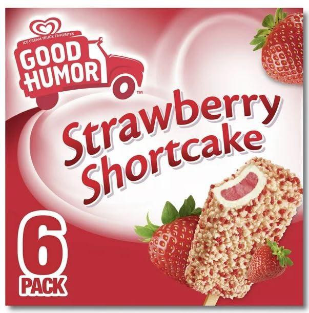Good Humor Strawberry Shortcake Frozen Dairy Dessert Bar combines creamy vanilla flavored frozen dessert with a luscious strawberry corethen coats the whole thing in our signature strawberry shortcake cake coating. If you love vanilla and strawberry ice cream, then our Strawberry Shortcake Bar is sure to bring you heartfelt joy. This classic dessert will remind you to savor simple moments of joy, with its nostalgic flavors reminding you of the sound of ice cream truck bells growing louder as the truck rounded the corner. It doesn't matter if you're 9 or 99; Good Humor frozen treats transport you to a brighter, sunnier place where all the serious stuff of life seems to, well, melt away.