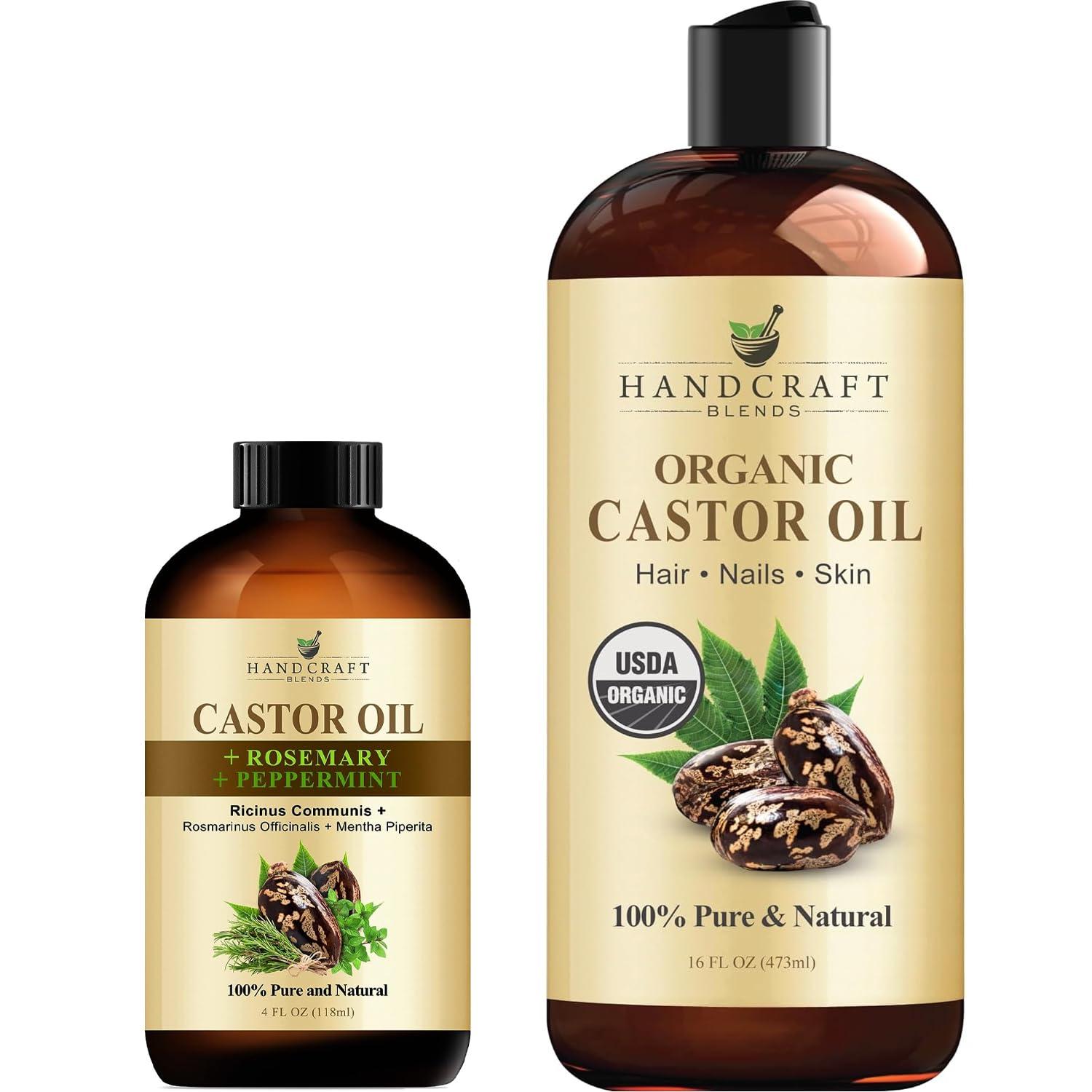 Handcraft Blends Organic Castor Oil and Castor Oil with Rosemary and Peppermint Oil for Hair Growth, Eyelashes and Eyebrows - 100% Pure and Natural Carrier Oil, Hair Oil and Body Oil