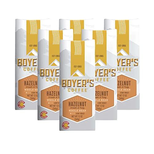 6 - 12oz Bags (4.5lbs total) of Hazelnut flavored coffee. Hazelnut flavored coffee is the most sold flavored coffee in the grocery store and there\'s a major reason why - It\'s smooth and nutty almond flavor that makes for a great tasting cup of flavored coffee for all times of the day. Pick up a case of six 12oz bags of Boyer\'s Hazelnut flavored whole bean coffee and enjoy.