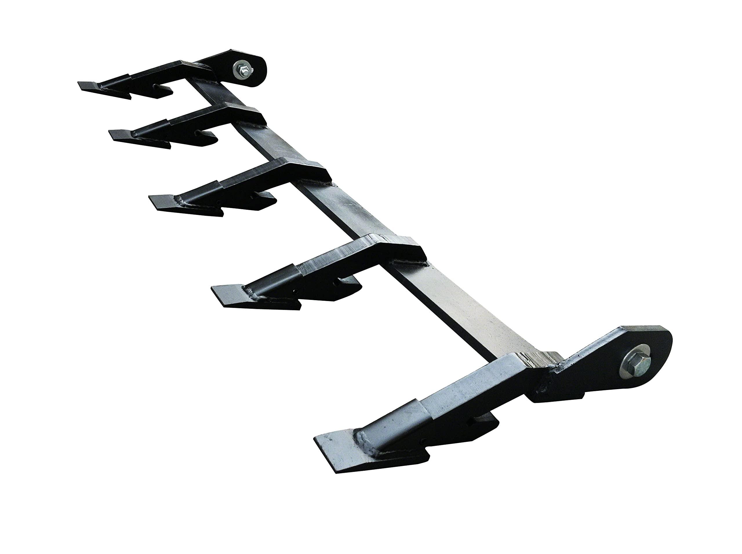 - - Total Width: 39-1/2" - Number of Teeth: 5 - Gap space between teeth: 10" - Shank Width: 1.1/8" - Tooth Width: 1.3/4" - 5/8" Bolts Nuts & Spacers are included