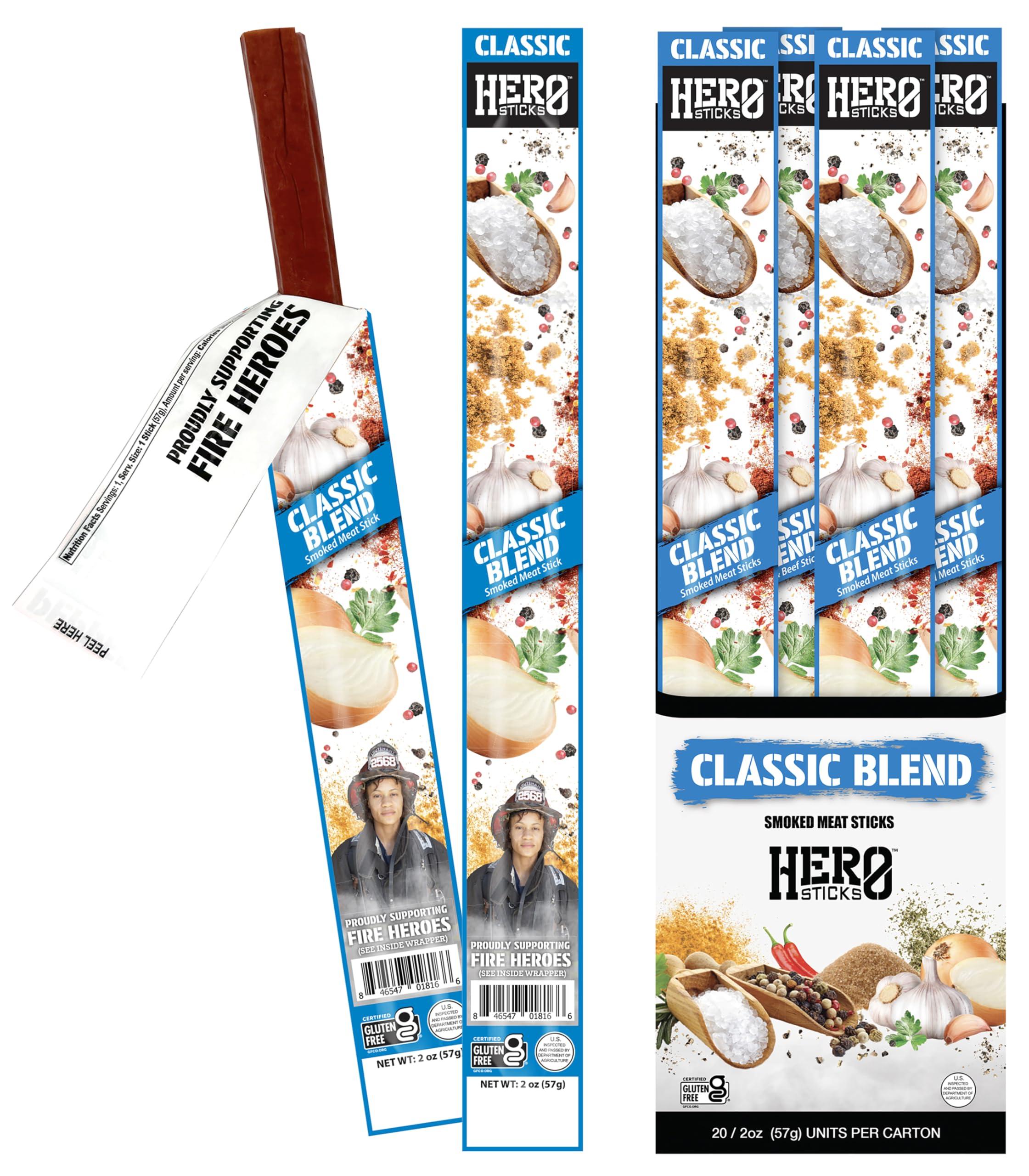 - MEAT STICKS - Whether you want a snack or need a quick meal, our Hero classic blend is a premium beef and pork stick with a smoky richness fused with flavorful savory spices, and a firm, meaty bite.