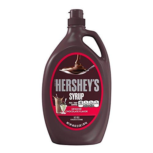 Complement sweet treats with HERSHEY'S Syrup Pour on HERSHEY'S Syrup's rich, delicious chocolate flavor over favorite desserts Enjoy genuine chocolate flavor in an easy-to-pour syrup perfect for a variety of snacks and treats Drizzle this chocolate syrup over ice cream and fruit, stir into beverages, or add chocolate flavor to baked treats HERSHEY'S Chocolate Syrup is OU Certified as a Kosher dairy product, and is a gluten-free and fat-free food Easily pour over desserts with the flip-top lid that seals in freshness, and place in the refrigerator after opening This product ships as 48-ounce packages in a pack of 12.