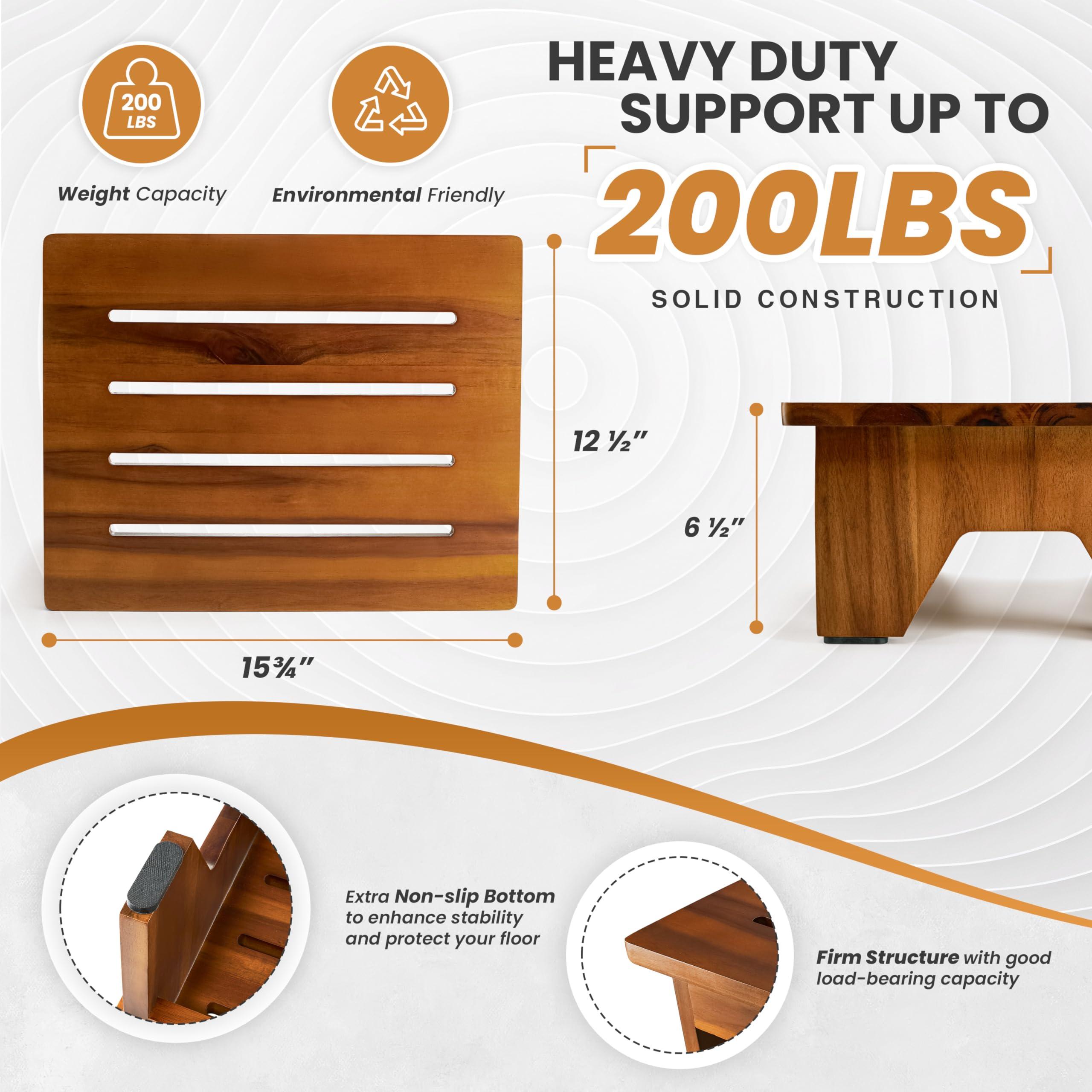 - Crafted from Durable Acacia Wood: Constructed from sturdy Acacia wood, this step stool ensures both strength and durability, while also adding a touch of natural beauty to your living space.The inclusion of a handle provides an added layer of support, making it an excellent choice