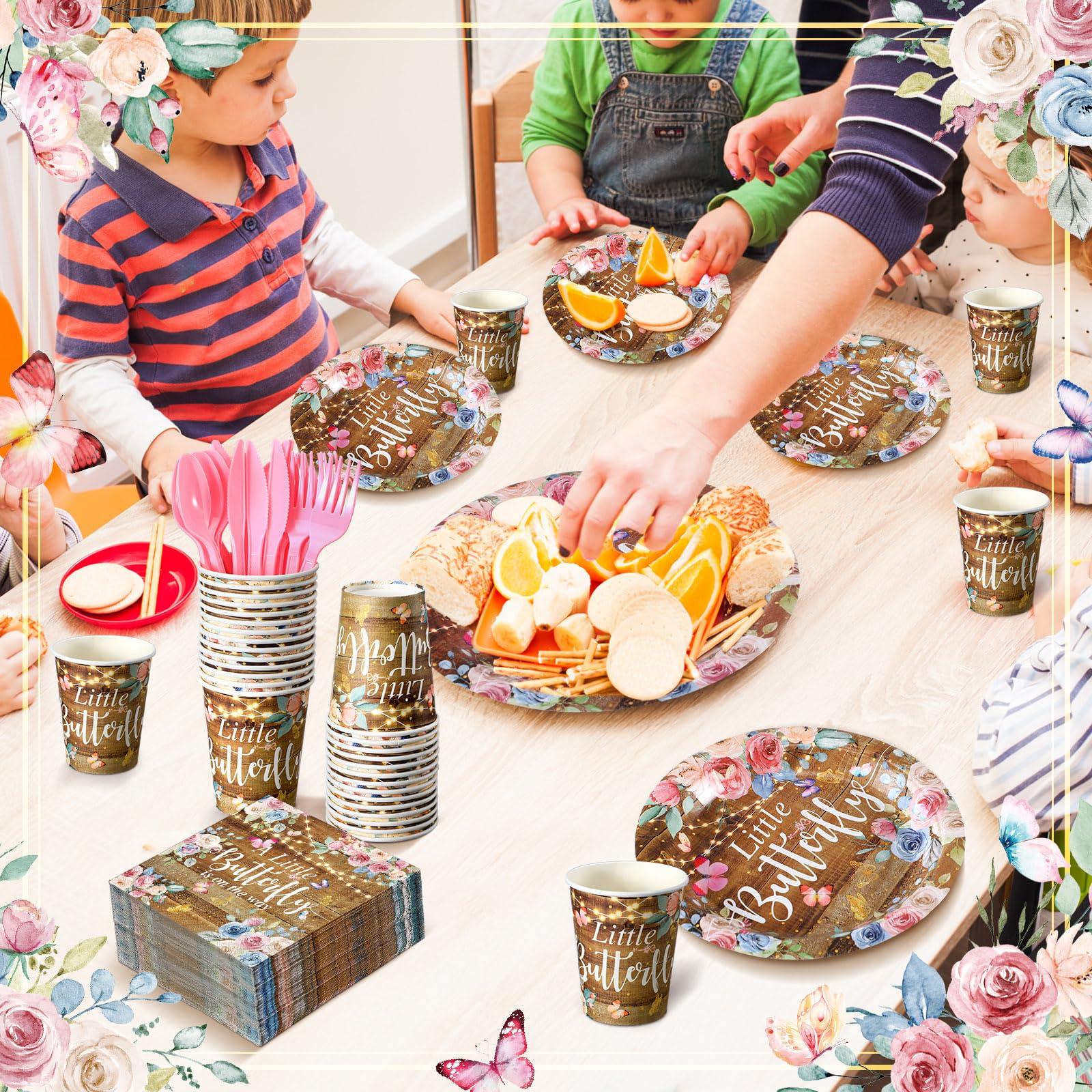 - Wide Application: the pink butterfly themed party combination is suitable for any occasion, convenient to carry, and reliable; It can serve as a baby shower party for boys or girls, a baby birthday party, a first birthday party for boys and girls, a picnic, and a gathering of friends, providing guests with meals, buffets, light meals, or other forms of dinner; It is also very decorative and practical at banquets, and can be used for daily use