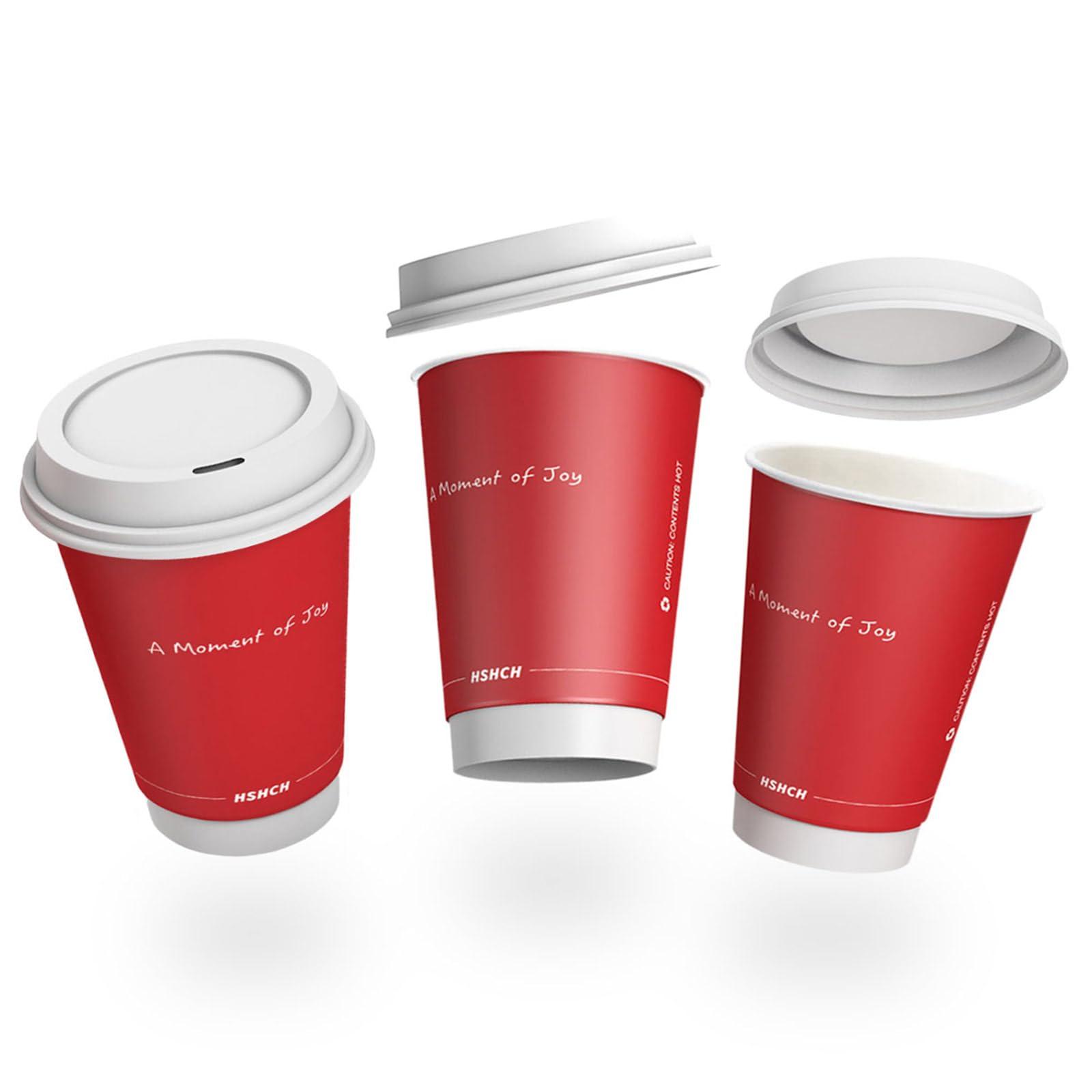 HSHCH Red Disposable Hot/Cold Cups with Lids are made stylish and strong, with a double wall design to keep heat in so that your beverages stay hotter, longer. These disposable 16 ounce coffee cups with lids are perfect to take your tea or coffee on the go, and they fit in cup holders and most single-serve coffee machines. The leak-resistant lid helps prevent spills and leaks, so you don't have to worry about a mess during your busy day. Enjoy your moment of Joy!
