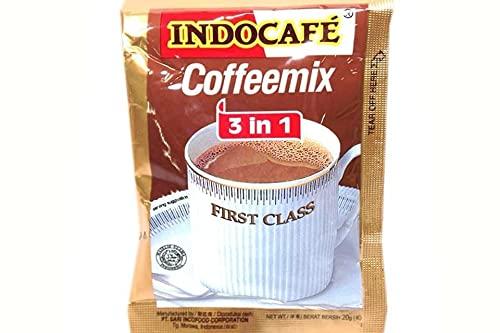 Indocafe 3 In 1 First Class Coffee Mix in 0.7oz (20g) sachet. First class instant coffee mix. Mix of coffee, non diary creamer and sugar in perfect composition. Product of Indonesia. Halal Certified .