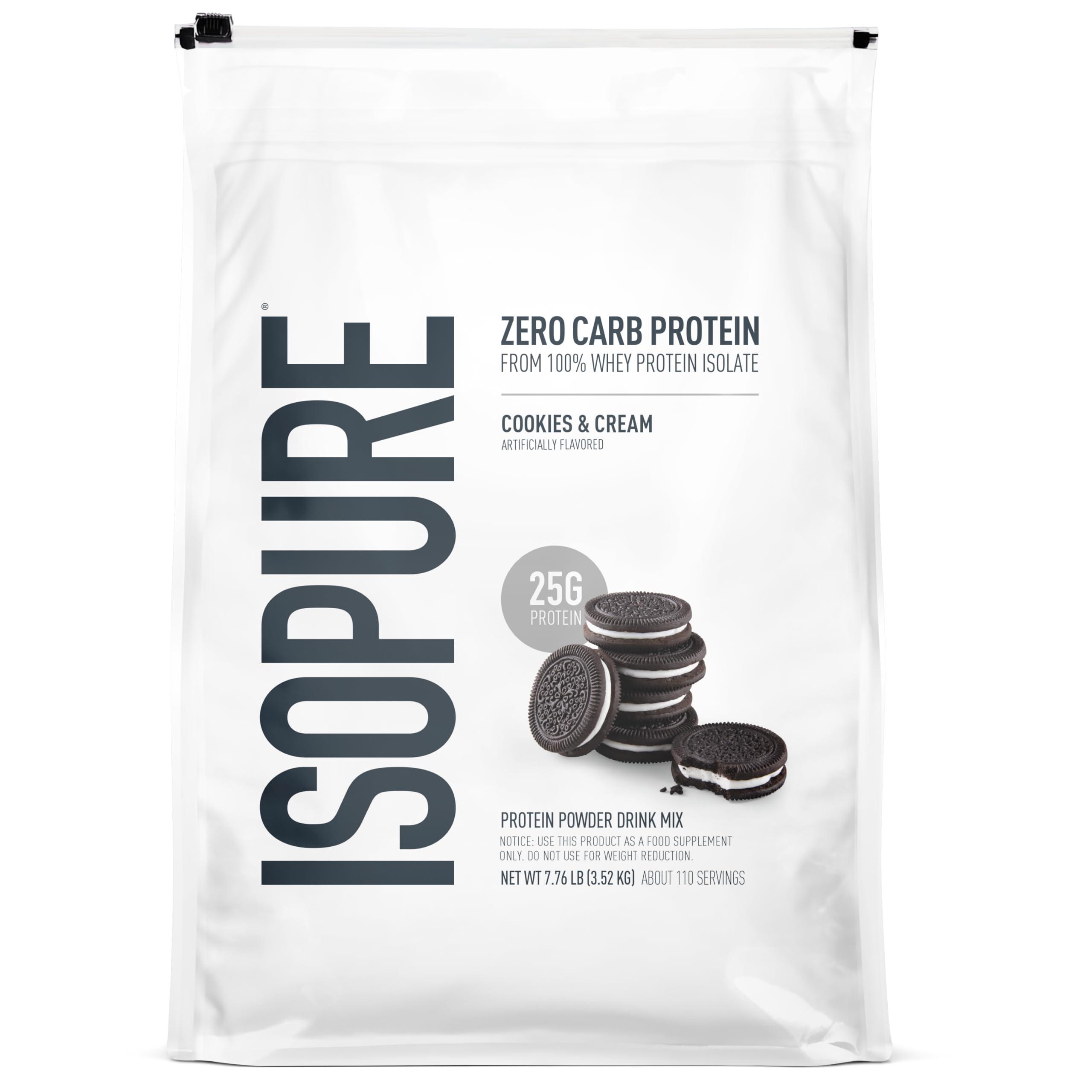 - One 7.5 lb bag (110 servings) of Isopure 100% pure whey isolate protein powder in dynamically delicious Cookies & Cream flavor