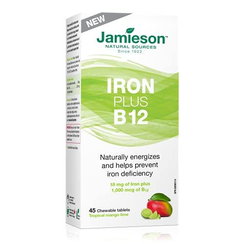 Gluten-Free Vegetarian Gelatin-Free SKU: 9172 Barcode: 64642091727 Natural Energy Support Jamieson Iron + Vitamin B12 helps you to energize, naturally! Iron helps reduce fatigue caused by iron deficiency, while B12 converts food to energy. Jamieson B12 is formulated exclusively with methylcobalamin, an advanced source of B12 that allows for faster absorption, so you can be naturally energized, faster! Al this in a fun and delicious tropical mango lime flavoured chewable tablet. Naturally energizes and helps prevent iron deficiency Helps to reduce tiredness and fatigue caused by iron deficiency (anemia) Supplement Information Ingredients Ingredients Each Tablet Contains: Iron (Saccharated iron oxide) 18 mg Vitamin B12 (Methylcobalamin) 1,000 mcg Non-Medicinal Ingredients: Dextrose, dicalcium phosphate, mannitol, vegetable stearic acid, natural flavours (enhancer, fruit punch, tangerine, lime, mango), sucralose, vegetable magnesium stearate, silica, citric acid. Contains milk ingredients NO gluten, artificial colours or flavours Serving Directions Directions Adults: Chew 1 tablet daily with a meal. Take a few hours before or after taking other medications. Store between 15C and 25C, away from children. Number of Servings: 45 Warnings Keep out of reach of children. There is enough drug (iron) in this package to seriously harm a child. Stop use if hypersensitivity occurs.