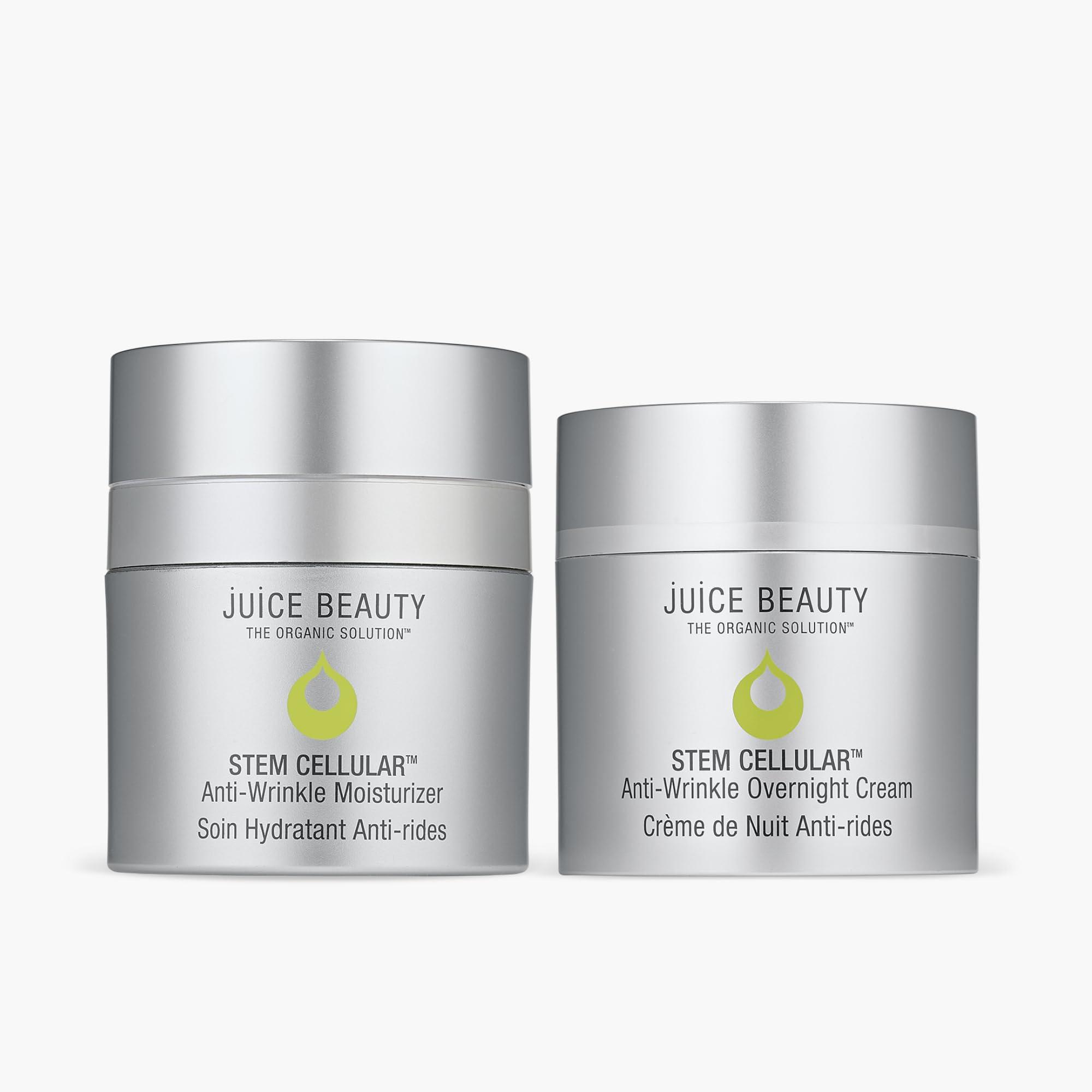 - STEM CELLULAR DAY + NIGHT DUO - Reduce the look of fine lines and wrinkles with two Juice Beauty moisturizers that rejuvenate day and night, around the clock: full-size Anti-Wrinkle Moisturizer and full-size Anti-Wrinkle Overnight Cream.