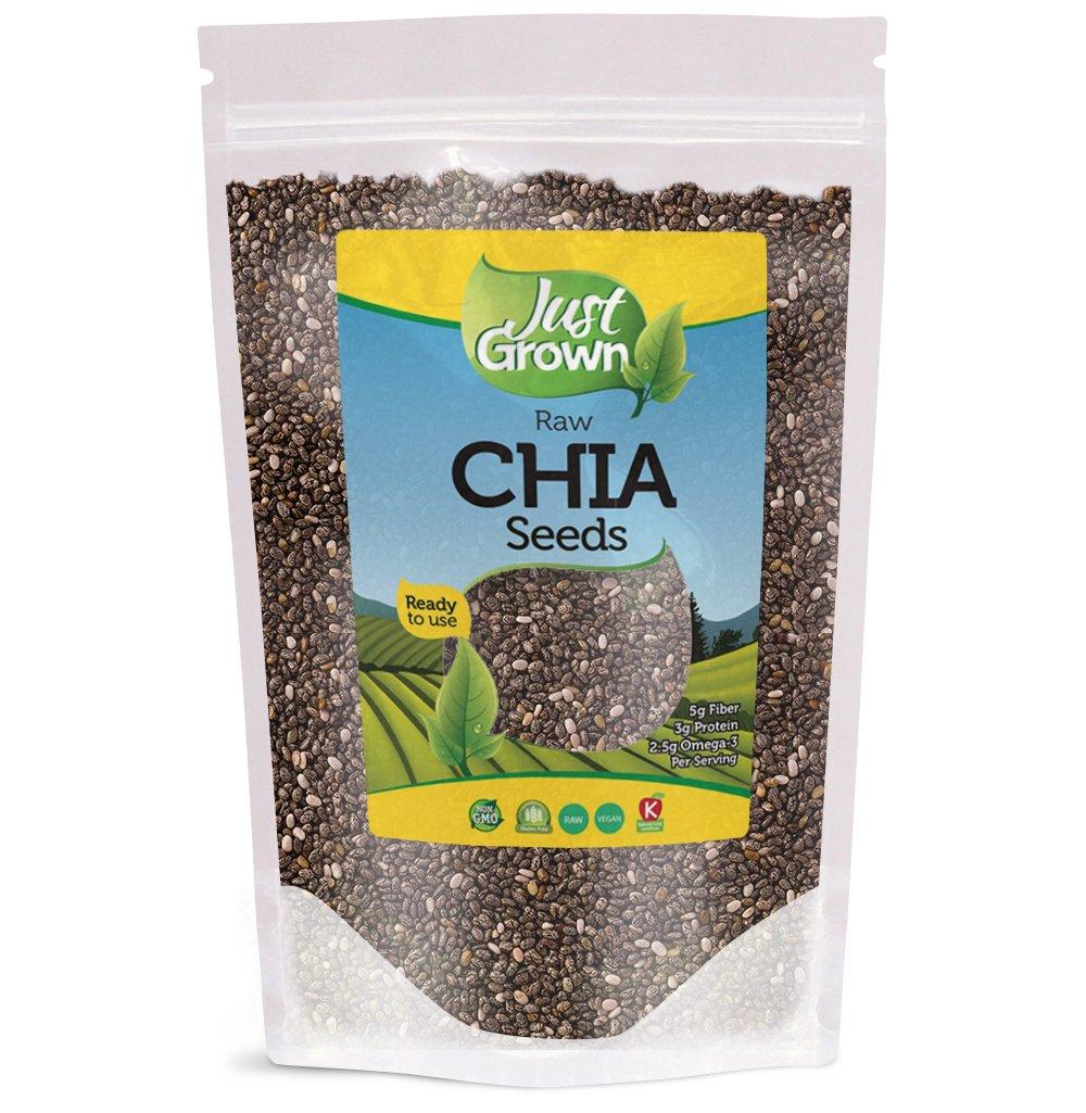 Chia seeds by just grown is loaded with nutrients such as 5g fiber, 3g protein, 2.5g omega-3 per serving. Raw chia seeds are raw, non-GMO, vegan, gluten free, certified Kosher. Ready to use, sprinkle on yogurt, salad and cereal. Pesticide free and chemical free.