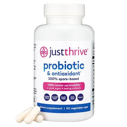 - 1000X Better Survivability: Just Thrive Probiotics spore-based formula survives the stomach environment 100% intact, providing you with unmatched digestive and immune support. This supplement is verified to help reduce gas, bloating, constipation, and diarrhea.