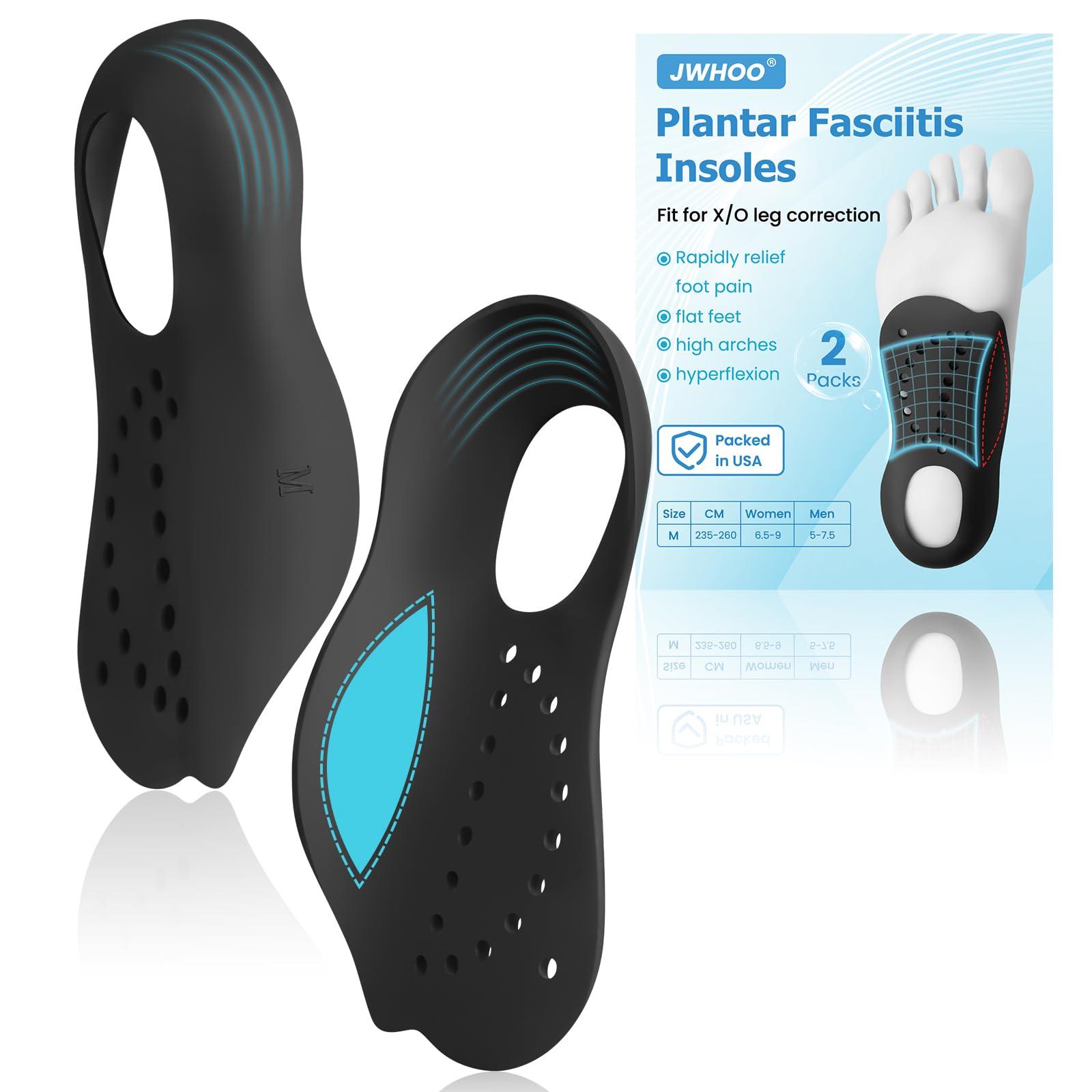 - RAPIEDLY RELIEVE FOOT PAINJWHOO Arch Support Inserts Women distribute plantar pressure by fitting the curve of the foot, preventing plantar fascia stretching, and the "U" heel protects the inflamed heel, reducing pain by reducing stress. Make it easy for you to walk every step of the way.