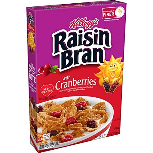 Wake up with Sunny and the simple goodness of Kellogg's Raisin Bran with Cranberries - a deliciously crafted, wholesome cereal that helps energize the start of your day. This crunchy, classic cereal is made with crispy, toasted bran flakes balanced with the satisfying taste of sweet raisins and tart cranberries. Just as nutritious as it is delicious, this breakfast cereal is heart-healthy (While many factors affect heart disease, diets low in saturated fat and cholesterol may reduce the risk of heart disease). Raisin Bran provides a good source of fiber and six essential vitamins and minerals to help you start your day off strong. Whether you enjoy your Raisin Bran in a bowlful of your favorite milk at breakfast time, sprinkled over yogurt for an afternoon treat, or as a crispy snack straight from the box after your workout, Kellogg's Raisin Bran Cereal with Cranberries lets you rise, shine and make the most of your day.