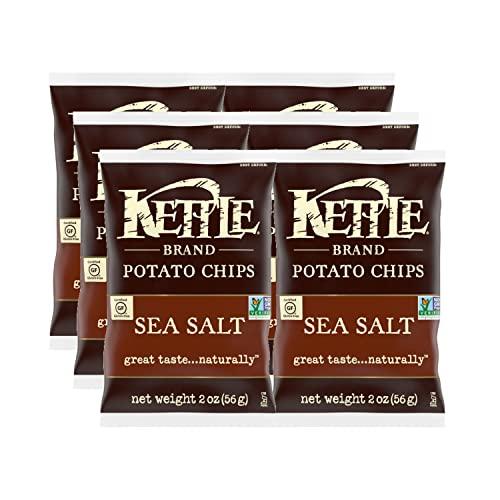 Kettle Brand Sea Salt kettle chips start with a search for undisputed potato excellence. And these babies are something special. Determined not to disrupt the flawless, spudsy goodness of these beauties, theyre cooked to perfection, skin on, one batch at a time until golden. Finally, each potato chip is sprinkled with a gentle kiss of sea salt. It takes pretty high standards to achieve Kettle Brand chips amazing crunch and flavor quality ingredients make a difference. When you open a bag of our Kettle Brand potato chips, you know you're getting incredible-tasting kettle chips made with authentic recipes by real people. From their farms to our kitchens and then to your home, the time and attention every Kettle Brand worker puts into their products is care you can trust. All that, plus Kettle Brand chips deliver a delicious snack thats non-GMO Project Verified, and Certified Gluten-Free. These 2-ounce snack bags of kettle chips are great at home or on-the-go. Kettle Brand potato chips. Extra in a good way.