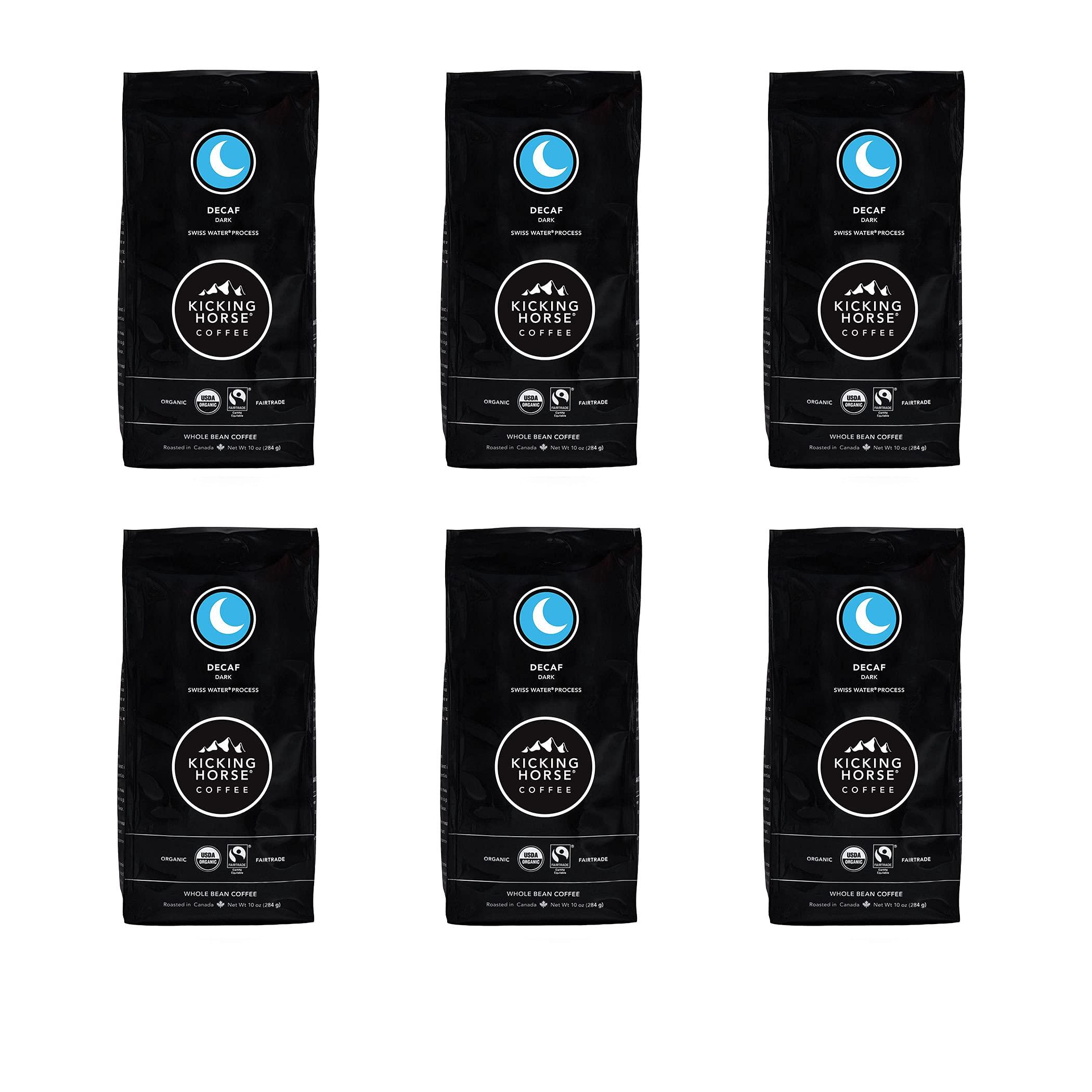 Swiss water process. A decaffeinated coffee should be exactly like every other one of our blends: Deep, dark and delicious. And that's what this is, a tip-top taste with a mellow finish. Enjoy. A decaffeinated coffee should be exactly like every other one of our blends: deep, dark and delicious. And that's what this is, a tip-top taste with a mellow finish. Enjoy! Kicking Horse Coffee only uses coffee that is certified good and fair for both the coffee drinkers and for farmers. Fairtrade uses profits from coffee to empower farmers and to invest in their community's future. #1215 by FLOCERT, 2020. Certified organic coffee means good products and principles. It means the best in coffee, and the best in intentions. It means smart farming, planning for tomorrow, and not sacrificing for the future. #CA-91402-Z-154575-2020 by EcoCert, 2020. The future is for good. Kicking Horse Coffee is committed to community. To being socially responsible. To good practices for the planet and future generations. #64822H57D3 by Kosher Check, 2020