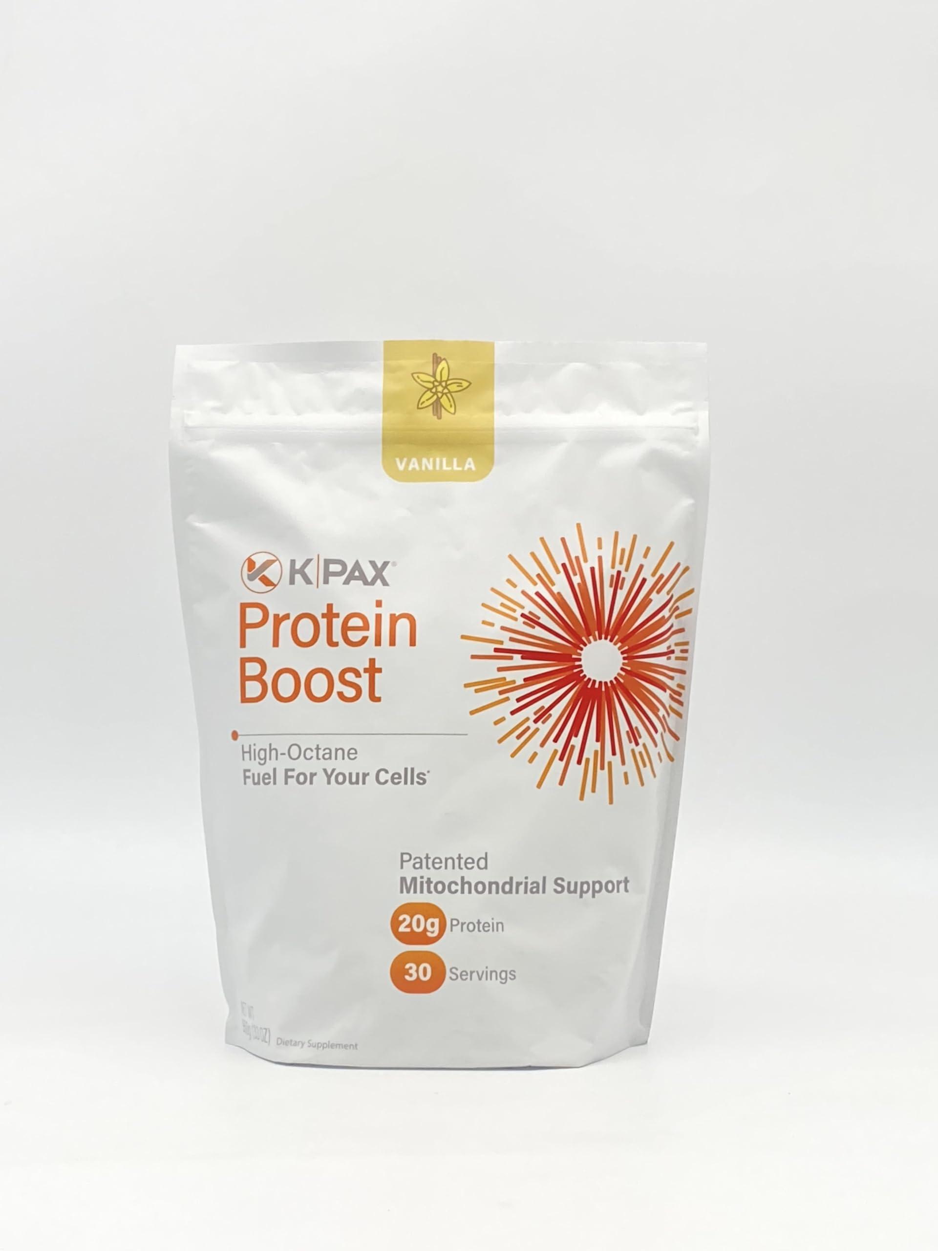 - Each serving of KPAX contains a blend probiotics to support digestive health and overall well-being. formulated with our proprietary mitochondrial support blend, 20 grams of protein and boosted with fruits and vegetables, probiotics and antioxidants, Protein Boost will fuel your cells and give your body the energy it needs to function properly.
