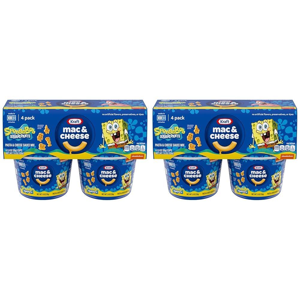 - 4 pack of 1.9 oz individual serving cups of SpongeBob SquarePants Kraft Mac & Cheese