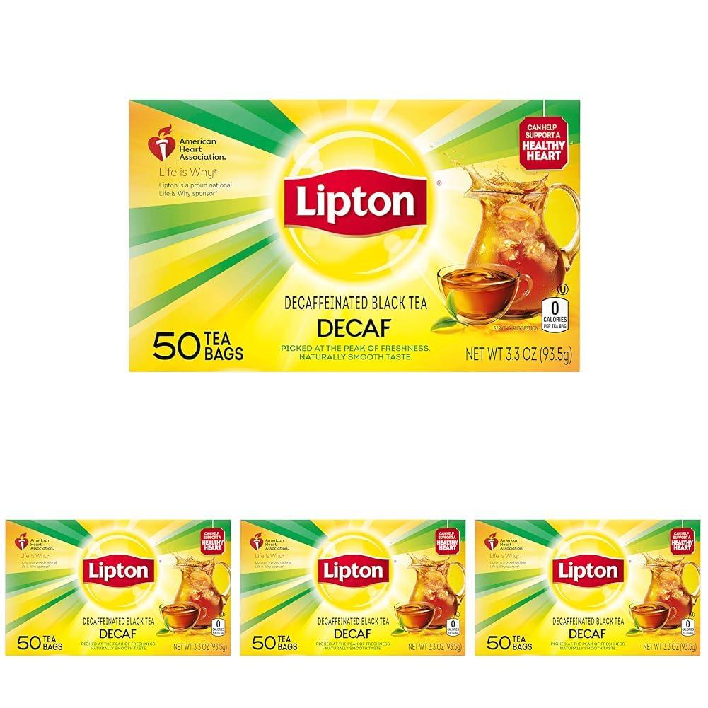 Lipton Decaffeinated Black Tea, 50 Count (Pack of 4)