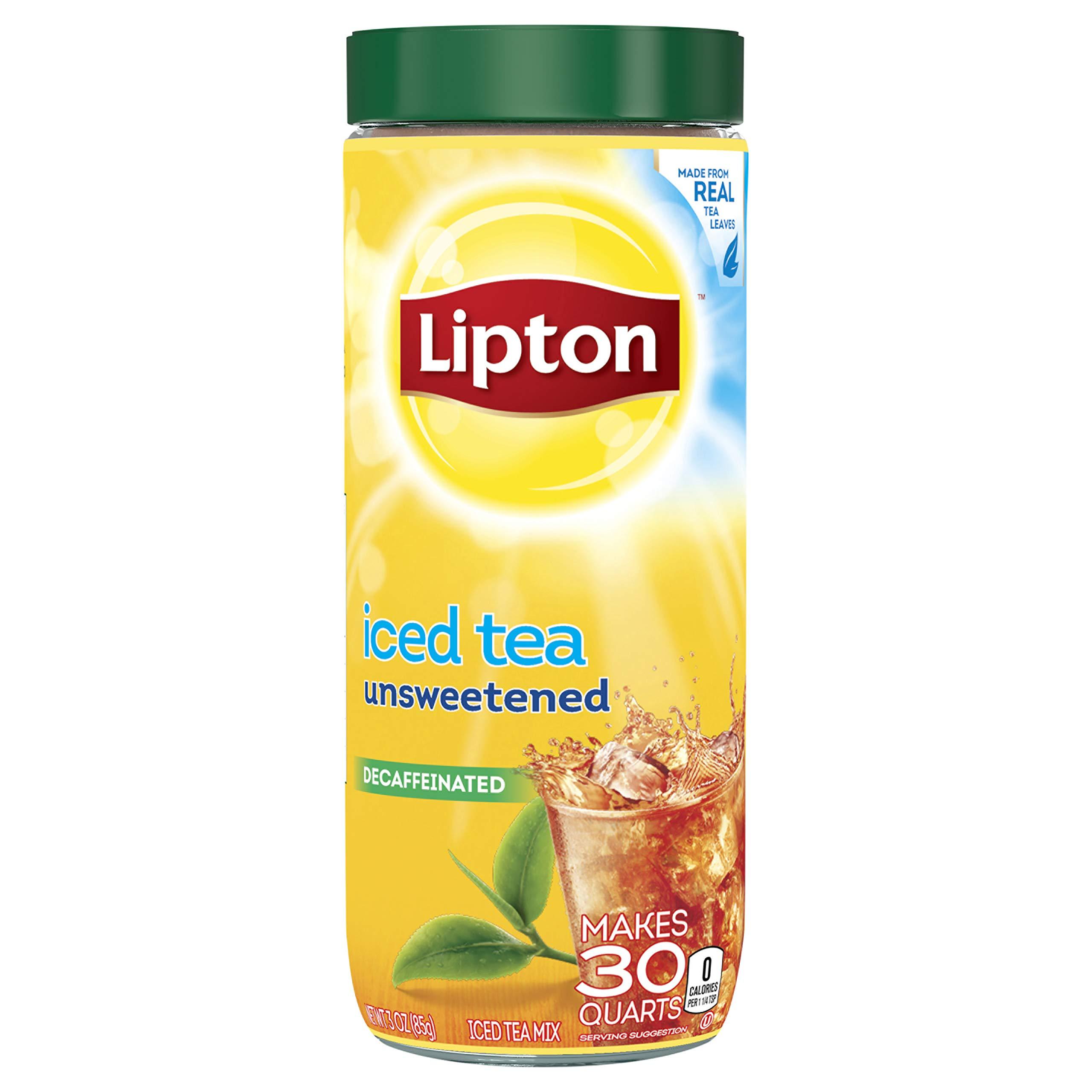 "Liptons expert mixologist have crafted a delicious blend of Lipton Decaf Black Iced Tea Mix to make the most refreshingly delicious iced tea for you and your family. Our Iced Tea Mixes are made from real tea leaves so the taste is refreshing and satisfying. And, who else but Lipton could serve up so many ways to enjoy the convenience of instant iced tea? Enjoy the great refreshing taste of Lipton Unsweetened Iced Tea Mix. Lipton iced tea is the perfect addition for any of your meals because it is tasty and refreshing. So dont just default to the usual, enjoy the taste of Lipton Unsweetened Iced Tea Mix. A brilliant taste for a brighter day! Lipton Black Iced Tea Mixes are the easiest way to prepare delicious and refreshing iced tea in just seconds. Just pour 4 tbsp of Lipton Iced Tea Mix in a glass, add 1 cup of cold water and enjoy a perfect glass of iced tea! This mix makes 30 (1 QT) pitchers of iced tea At Lipton we never compromise on quality. Only the best tea leaves go into our iced tea mixes. All our tea leaves are sourced from around the world and expertly blended so you can enjoy a premium quality experience. You will reward yourself with the fresh, delicious taste that makes iced tea a great choice."
