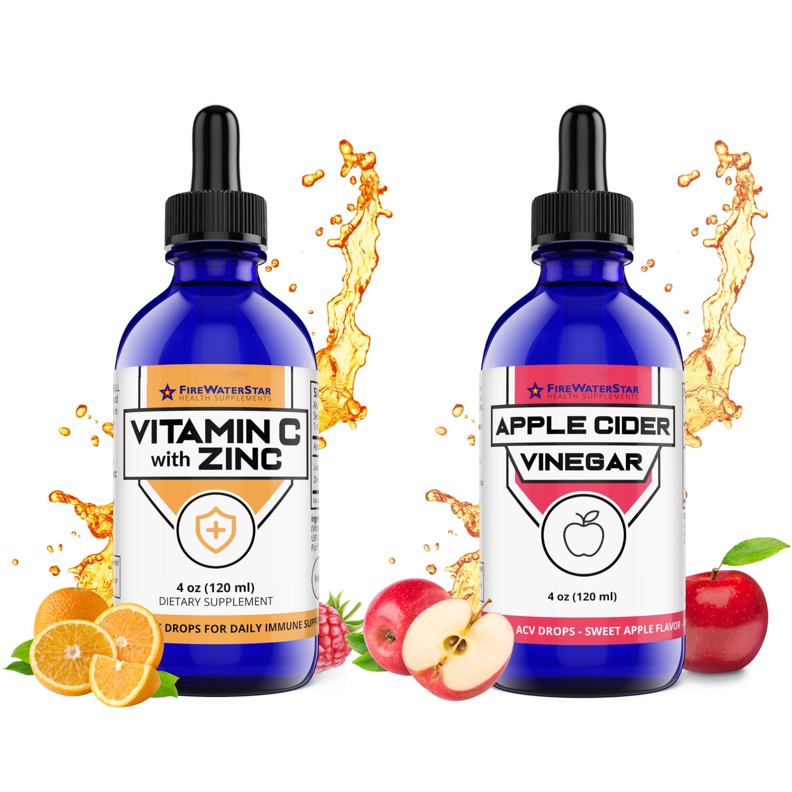 FIREWATERSTAR HEALTH SUPPLEMENTS Liquid Vitamin C with Zinc and Apple Cider Vinegar Bundle