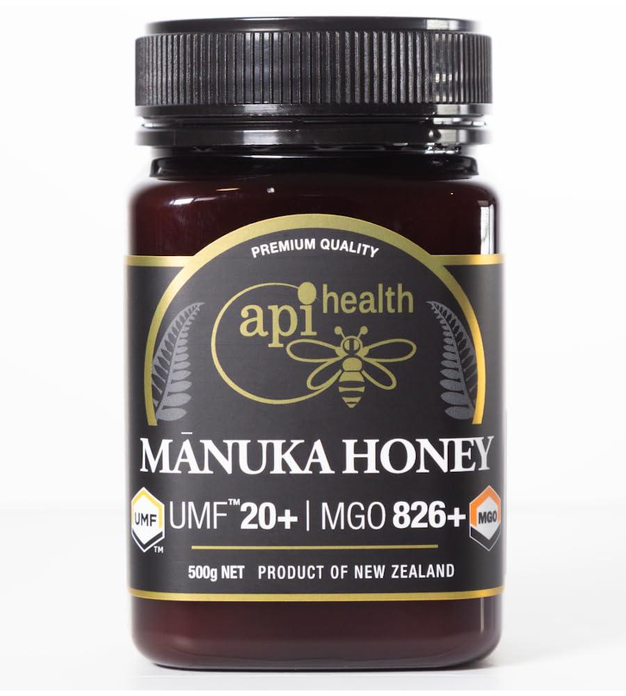 API Health UMF 20+ NZ Manuka Honey range is 100% pure, NZ independently tested manuka honey that contains high levels of special chemical markers not found in other honeys. UMF range is honey that tests with a UMF (Unique Manuka Factor) of 20+ or higher. API HEALTH UMF 20+ manuka honey has: A characteristic golden brown color, distinctive and unmistakable manuka flavor, notes of caramel and malt, a rich, crisp finish, thick and rich texture with a pleasant aftertaste. The blossoms of the New Zealand Manuka tree (Leptospermum Scoparium) produce honey that is naturally high in powerful natural compounds including methylglyoxal (MG or MGO). Directions: Dissolve in mouth by the spoonful. Mix with warm water as a tasty drink, drizzle over food, use in recipes, or take one teaspoon of happiness once or twice a day. Store below 25 degrees Celsius.