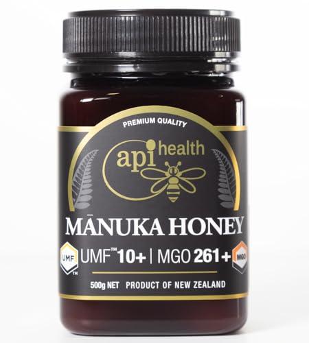 - UMF 10+ (MGO 261+): 100% pure monofloral Manuka honey from New Zealand.