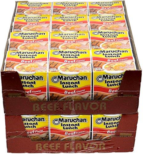 Maruchan Instant Lunch Cup O Noodles Beef Flavored Soup 24 Cups Per Box. It is great for lunch boxes, quick snacks, and college students.