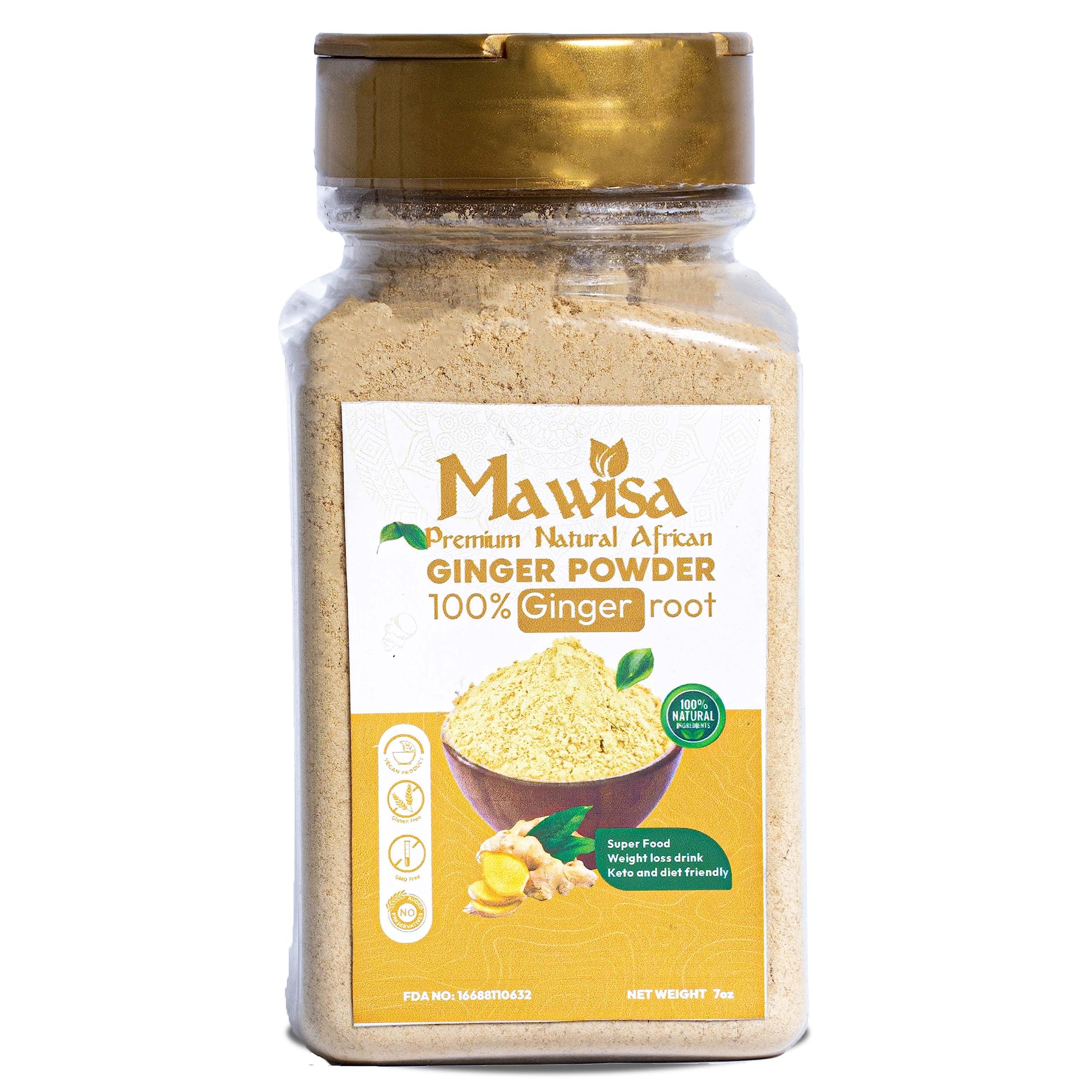 - Easy to Use Fine Powdery Ginger : Designed to mix well with meals and beverages, Mawisa premium raw ginger powder is available in a fine loose powder form that blends easily with meals and beverages.. To ensure you get a bottle of purely natural ginger powder, it has been sifted to remove clumps, stones, and debris.