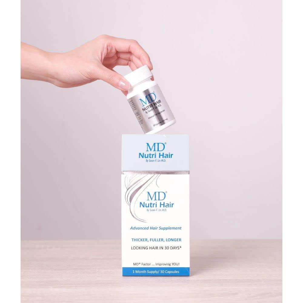 Hair loss can be a frustrating process. However, thinning, shedding, and losing hair is a preventable thing! Get your hair looking fuller and thicker than ever with our MD Nutri Hair Growth Supplement with Biotin. Add these capsules to your daily vitamin regimen to support healthy and natural hair growth. Our product is hormone-free, so it is great for both men and women! Biotin is a vitamin that plays a role in the health of your hair, skin, and nails. You can feel good knowing that you arent using harsh chemicals to get the hair that you want. Our product helps limit excess shedding, thinning, and breakage in your hair. Comb through a healthy and full head of hair that is strong and all natural. Our formula includes niacin, lilac extract, flaxseed, collagen, and vitamin Ethese vital ingredients support your hair and scalp health. They also act as a DHT blocker, which limits the amount of hair loss. You can add this supplement to your daily vitamin intake to support the health of your head and hair. Simply take 1 pill per day to start seeing results. Our bottle comes with a 30-day supply. Get the thick and full head of hair you've been wanting with the MD Nutri Hair Growth Supplement with Biotin.