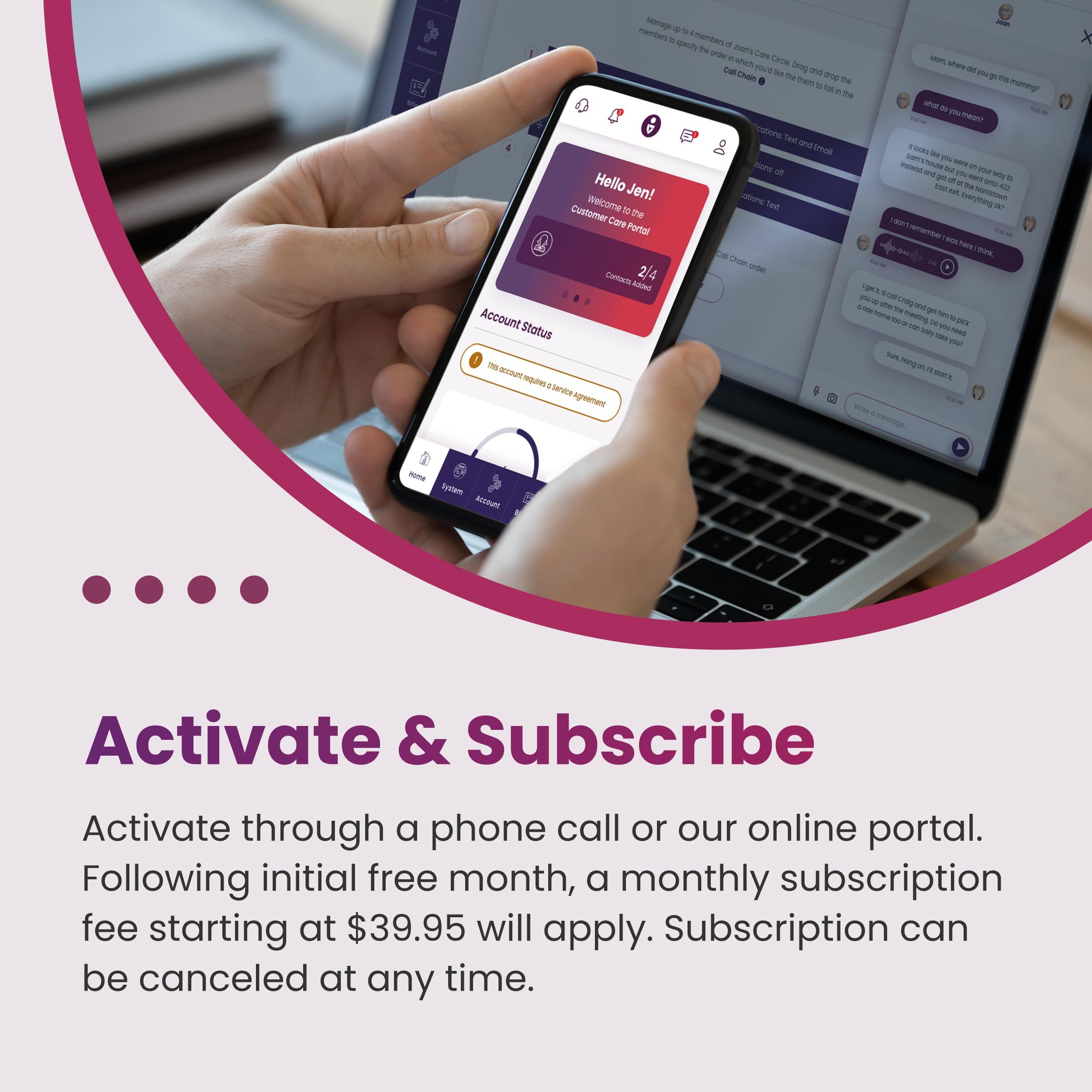 - ACTIVATE & SUBSCRIBE- Start with a free month of 24/7 monitoring when you activate by phone or online portal (instructions on package); after free trial, a $37.95 subscription fee applies; cancel anytime; add fall detection for seniors during activation